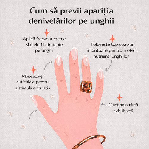 Dacă observi șanțuri orizontale pe unghii, mai ales după o perioadă de boală, experții recomandă să acorzi unghiilor o atenție sporită timp de câteva luni, până la regenerarea completă, pentru a le menține sănătoase și rezistente.